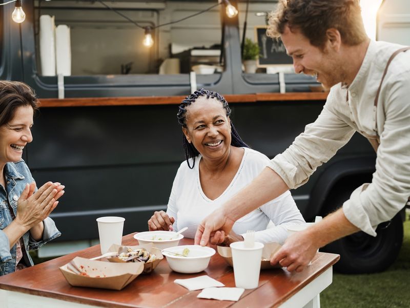 - Taking orders and serving food and drinks